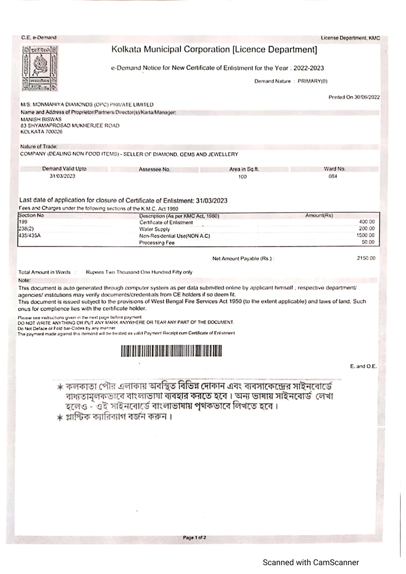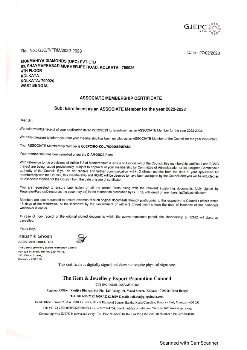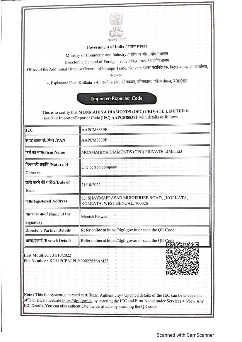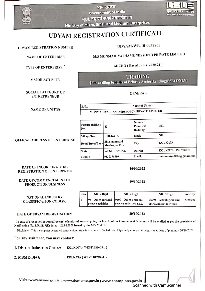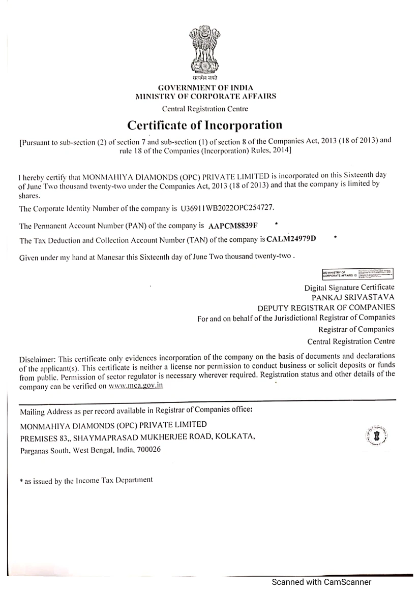 MONMAHIYA DIAMONDS (OPC) PRIVATE LIMITED